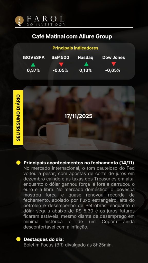 Tudo o que você precisa saber para o seu dia de investimentos, de forma resumida.
