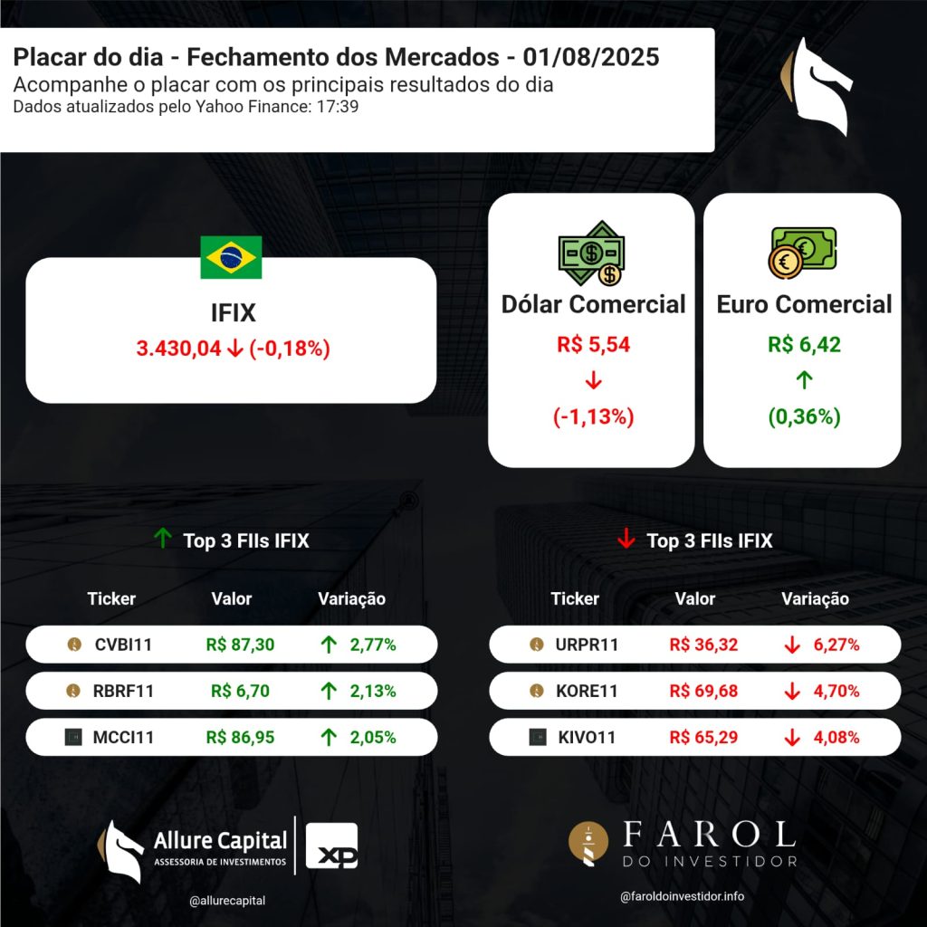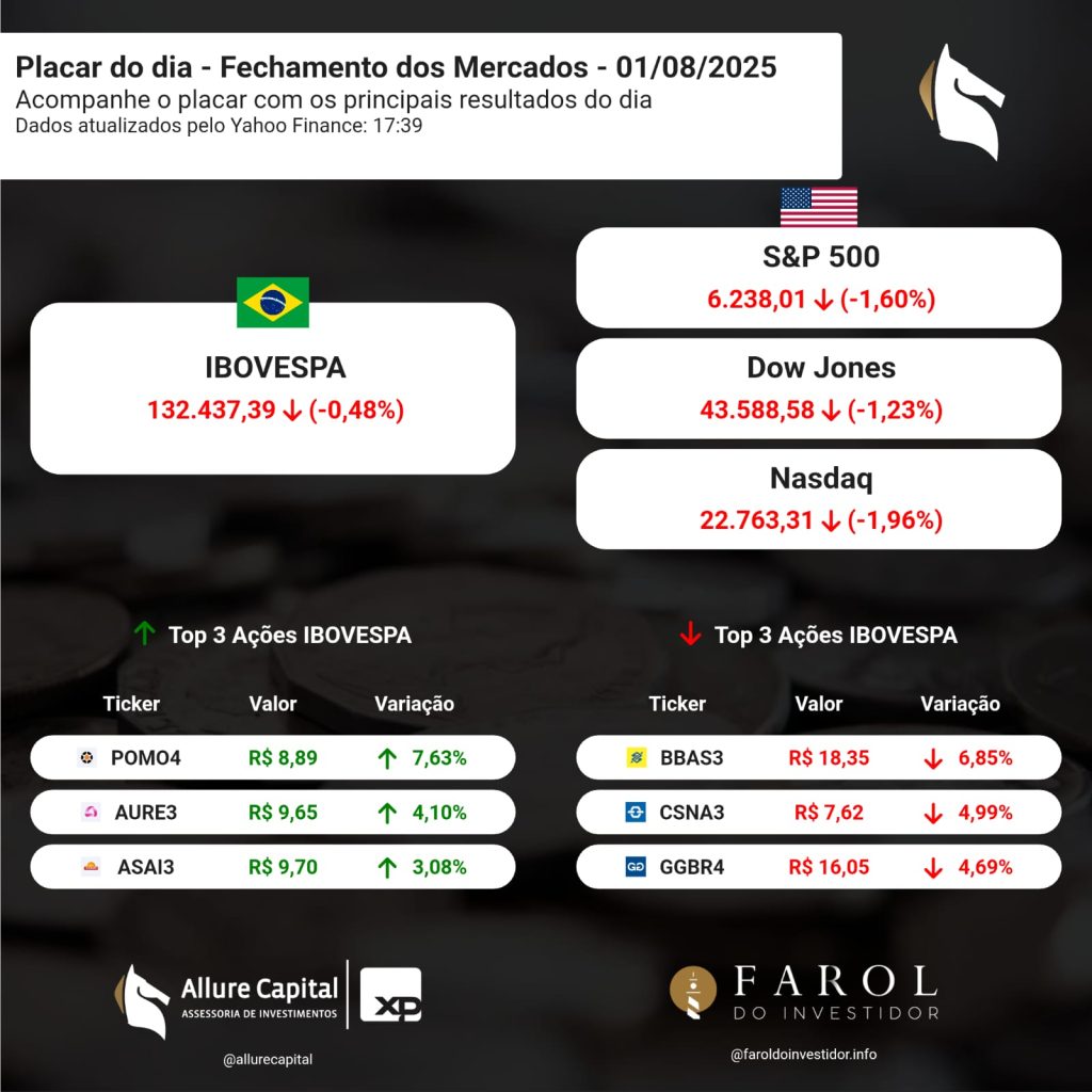 PLACAR DO DIA – Fechamento dos Mercados (01/08)