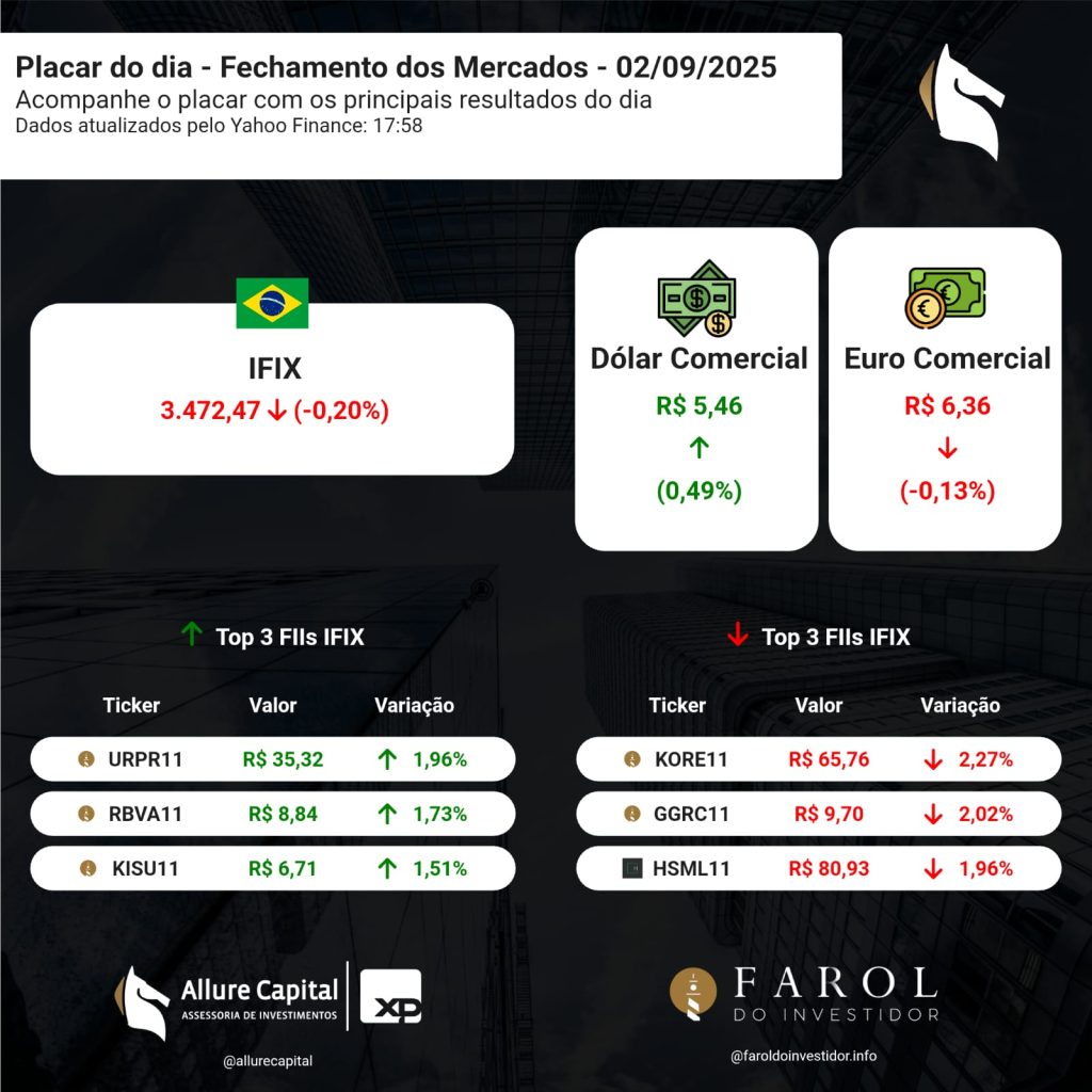 PLACAR DO DIA – Fechamento dos Mercados (02/08)