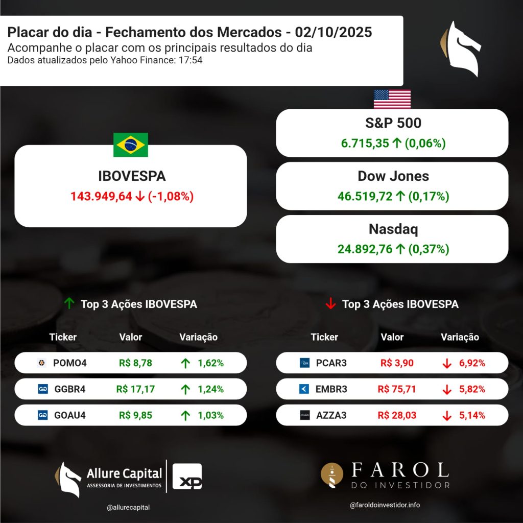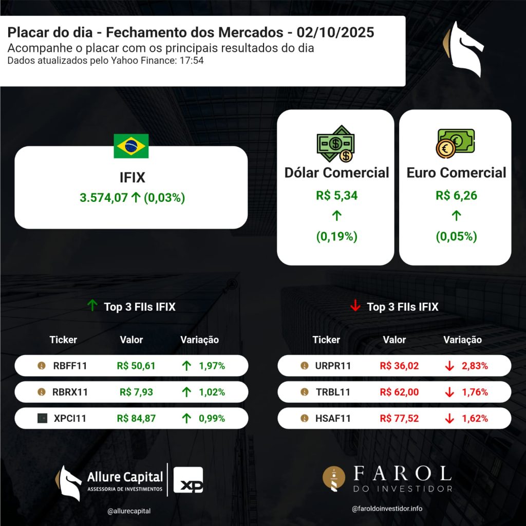 PLACAR DO DIA – Fechamento dos Mercados (02/10)