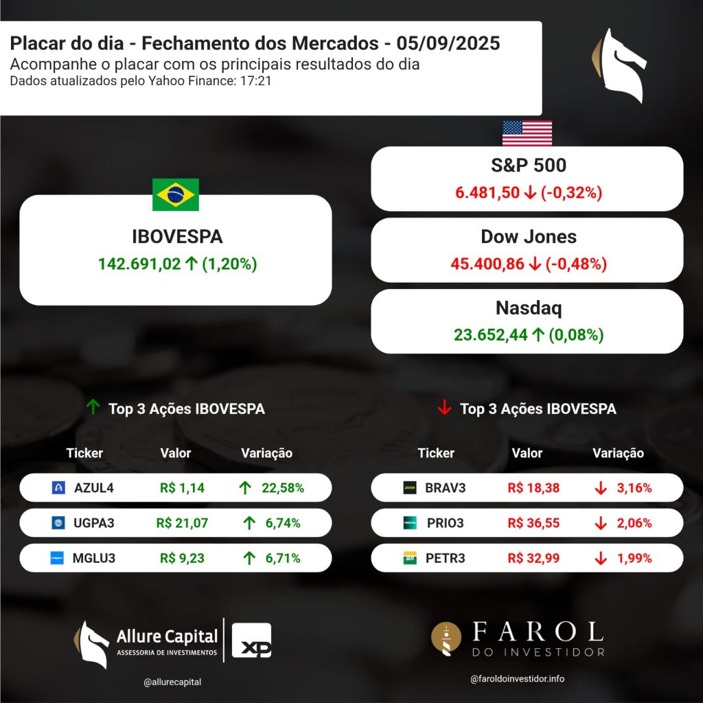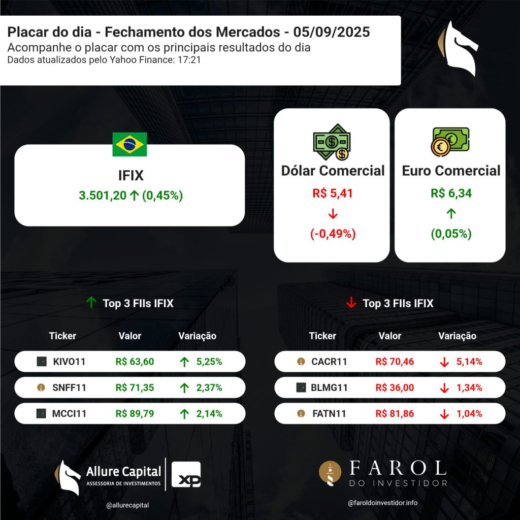 PLACAR DO DIA – Fechamento dos Mercados (05/09)