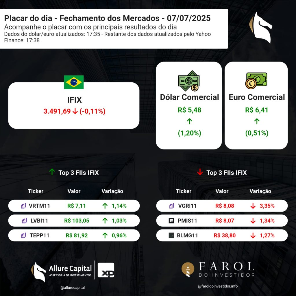 PLACAR DO DIA – Fechamento dos Mercados (07/07)