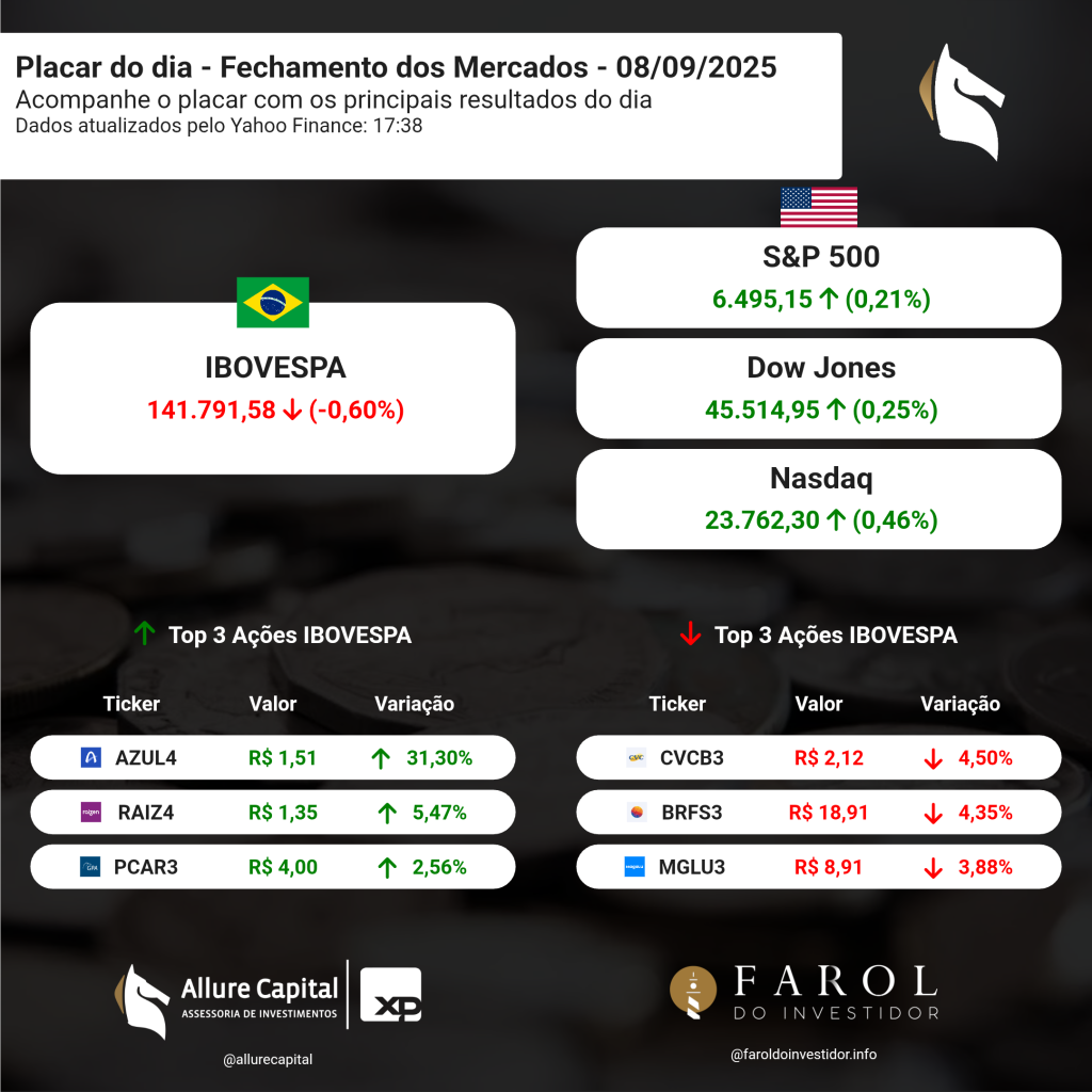 PLACAR DO DIA – Fechamento dos Mercados (08/09)