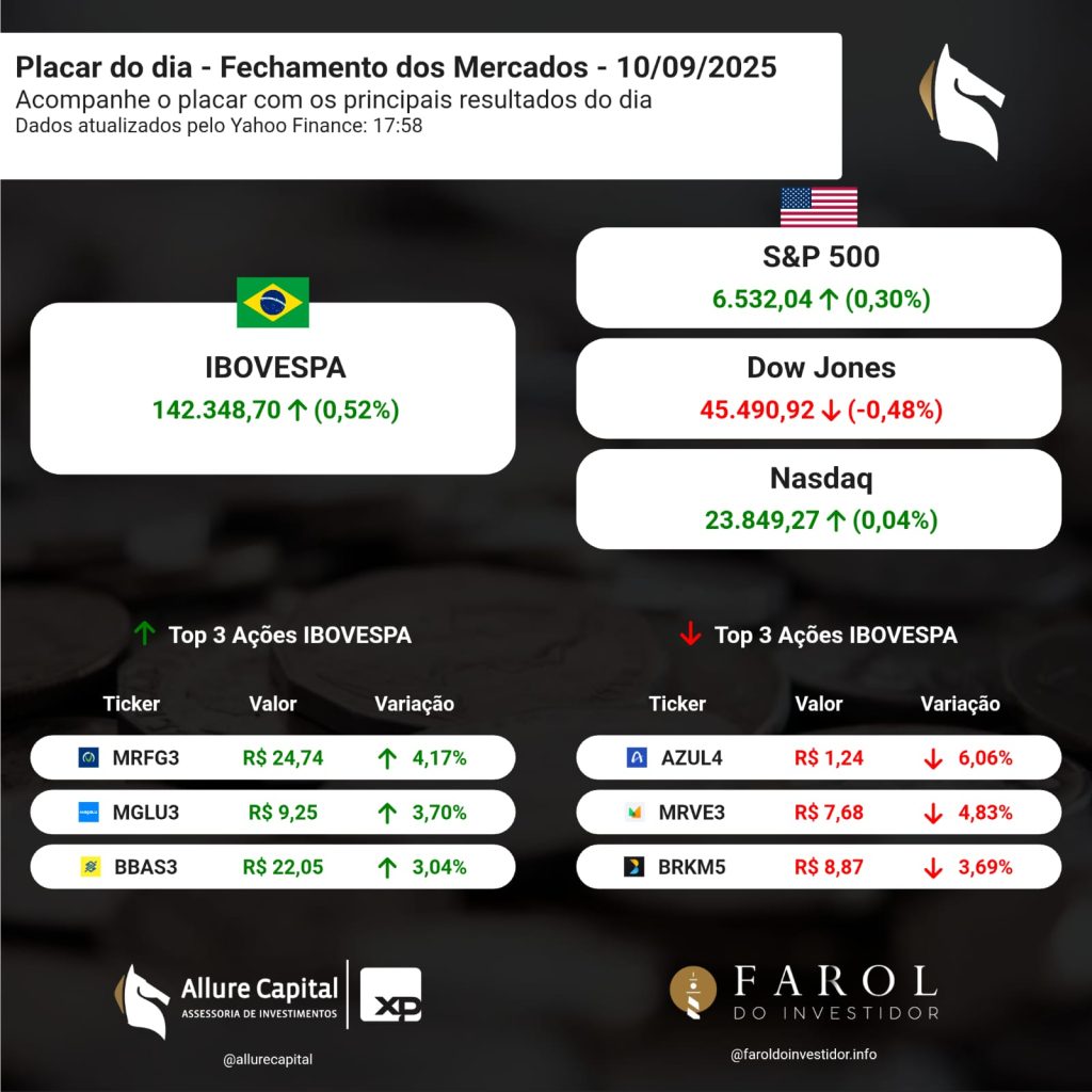 PLACAR DO DIA – Fechamento dos Mercados (10/09)