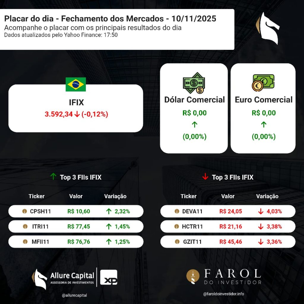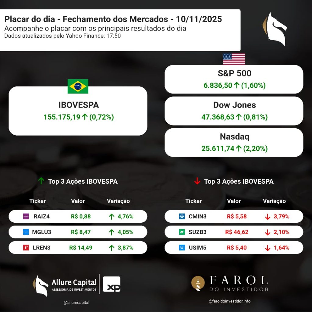 PLACAR DO DIA – Fechamento dos Mercados (10/11)