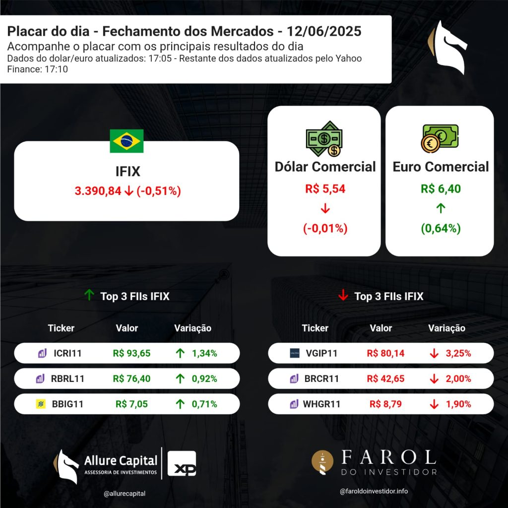 PLACAR DO DIA – Fechamento dos Mercados (12/06)