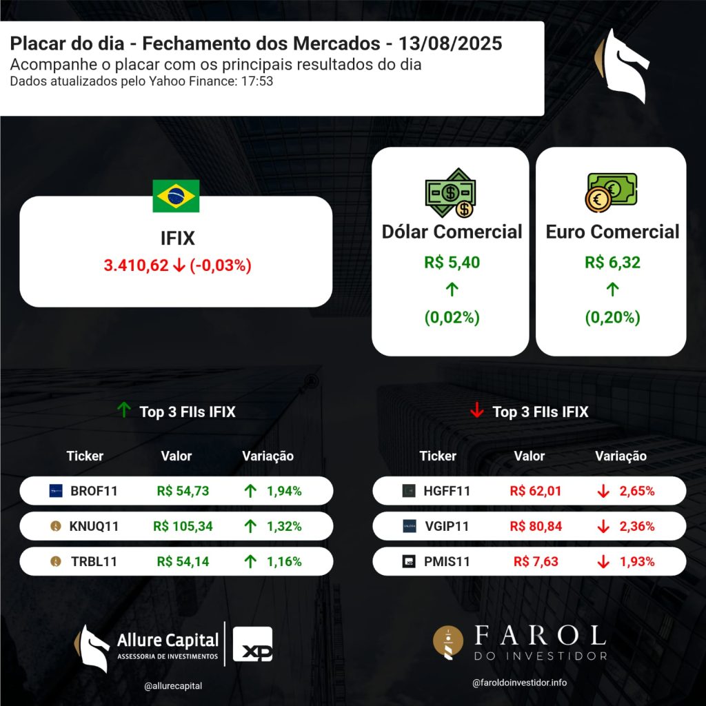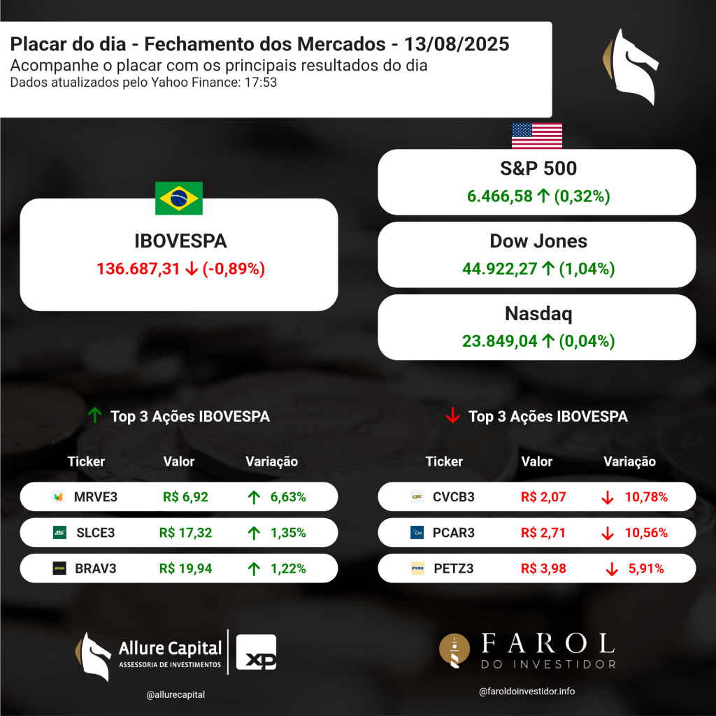 PLACAR DO DIA – Fechamento dos Mercados (13/08)