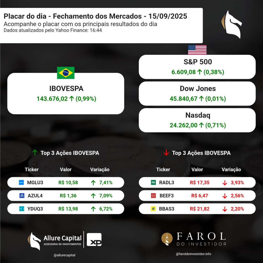PLACAR DO DIA – Fechamento dos Mercados (15/09)