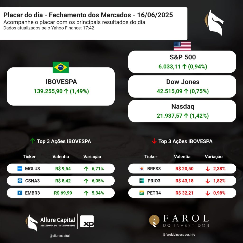 PLACAR DO DIA – Fechamento dos Mercados (16/06)