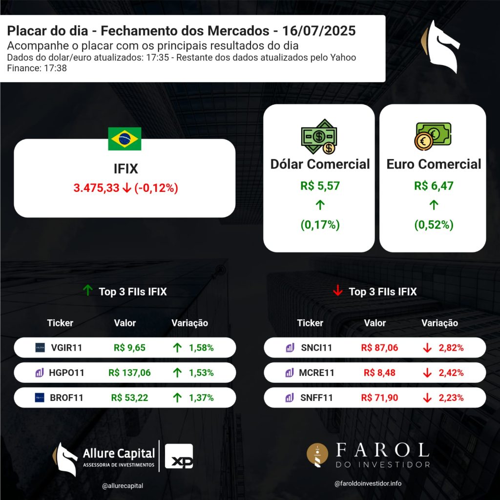 PLACAR DO DIA – Fechamento dos Mercados (16/07)