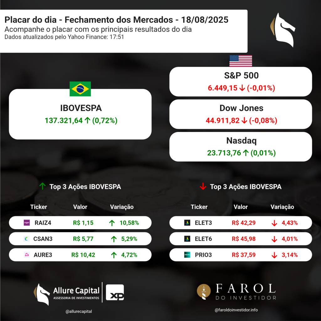 PLACAR DO DIA – Fechamento dos Mercados (18/08)