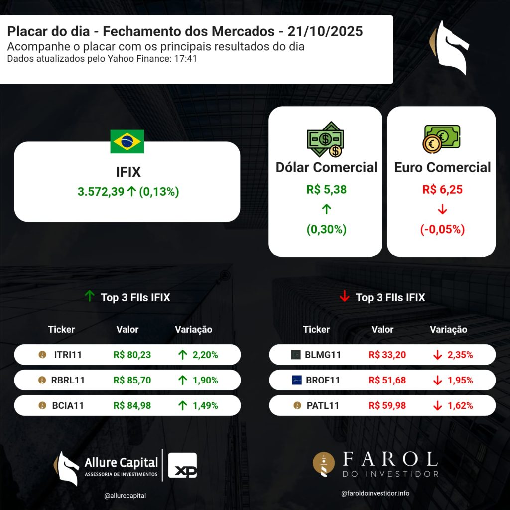 PLACAR DO DIA – Fechamento dos Mercados (21/10)