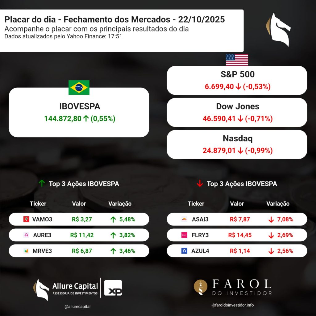 PLACAR DO DIA – Fechamento dos Mercados (22/10)