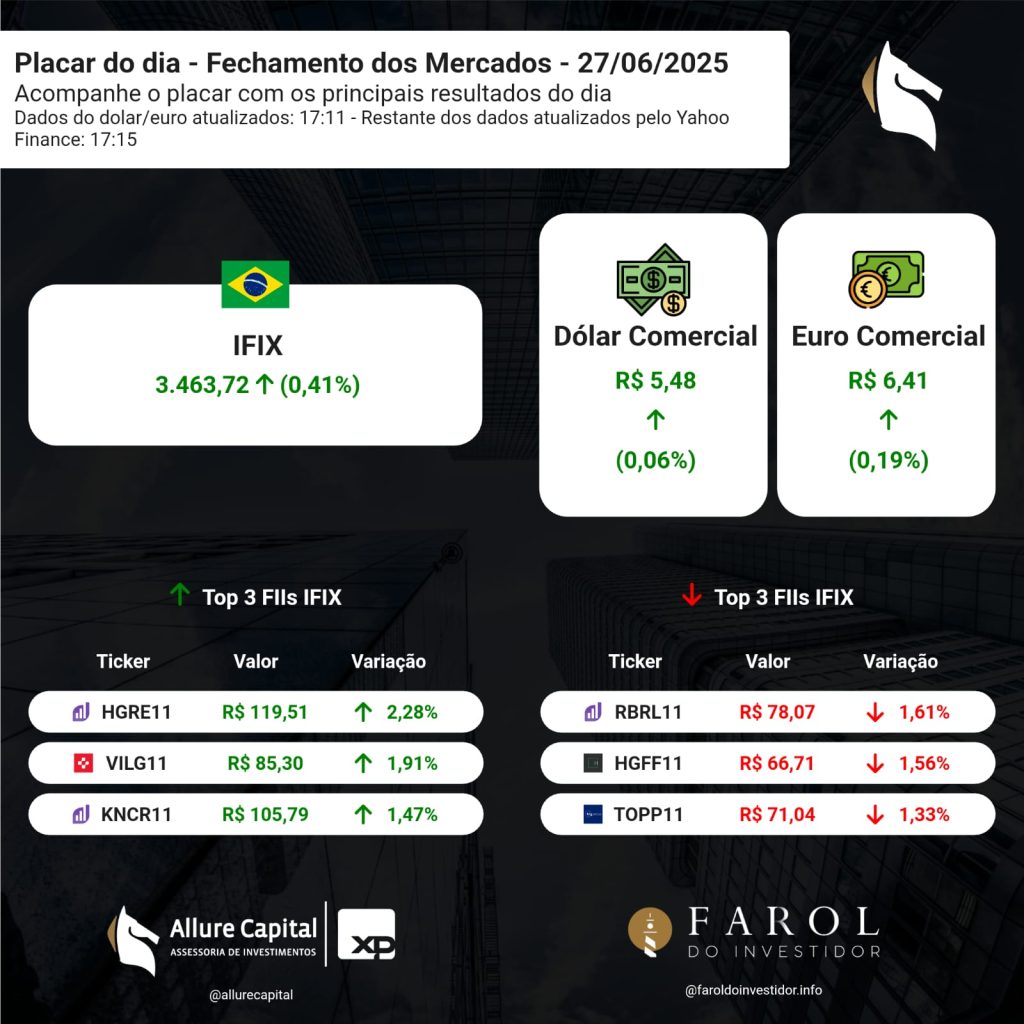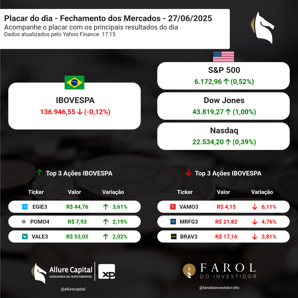 PLACAR DO DIA – Fechamento dos Mercados (27/06)