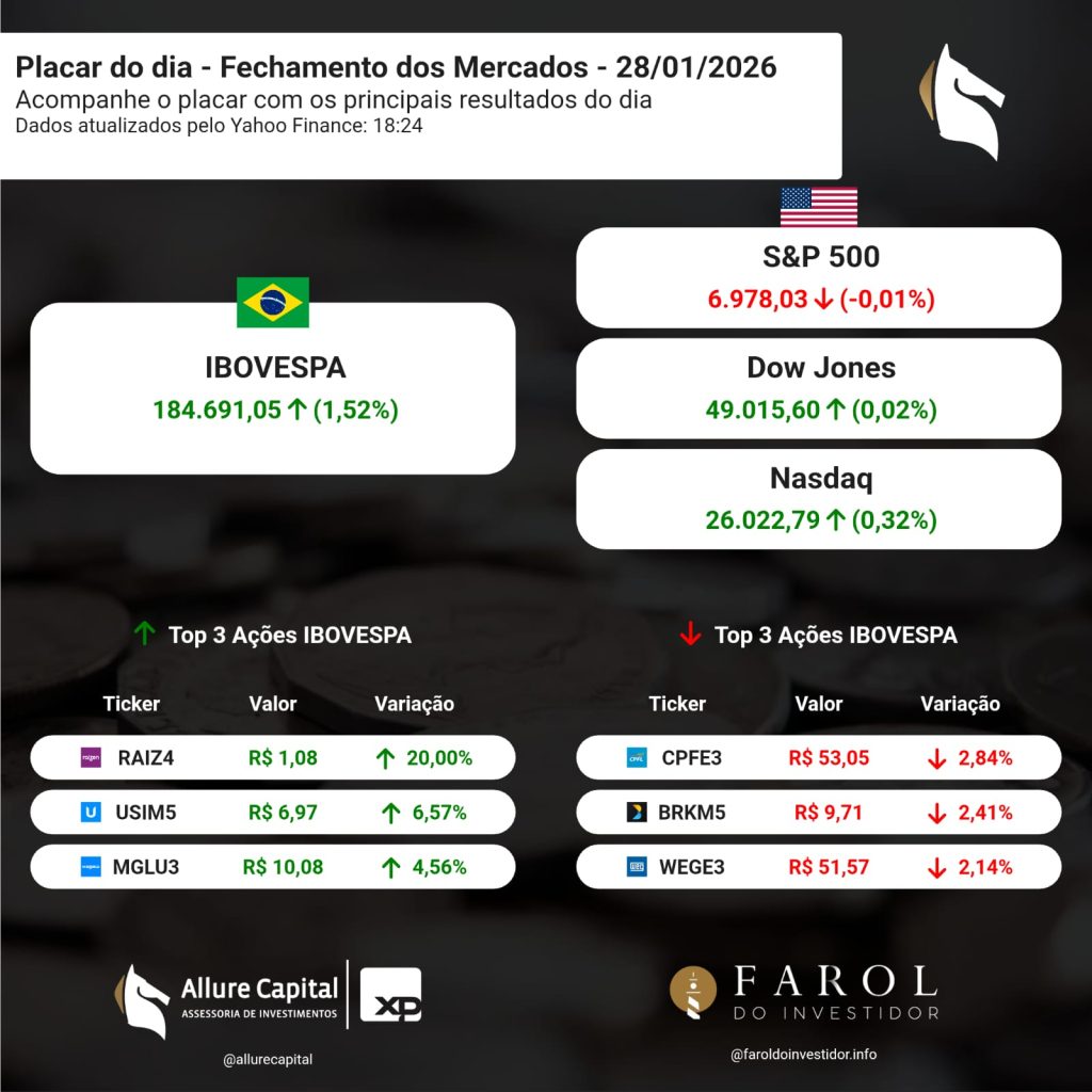 PLACAR DO DIA – Fechamento dos Mercados (28/01)