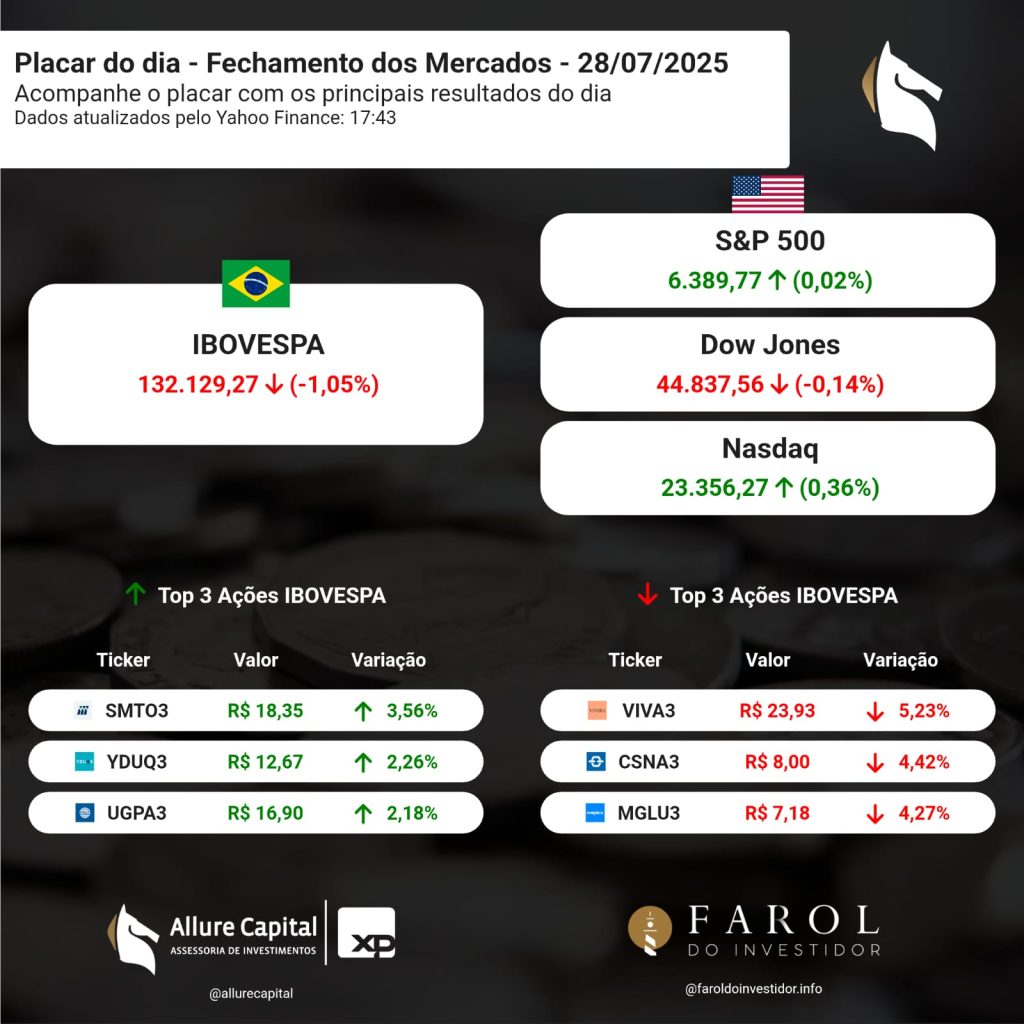 PLACAR DO DIA – Fechamento dos Mercados (28/07)