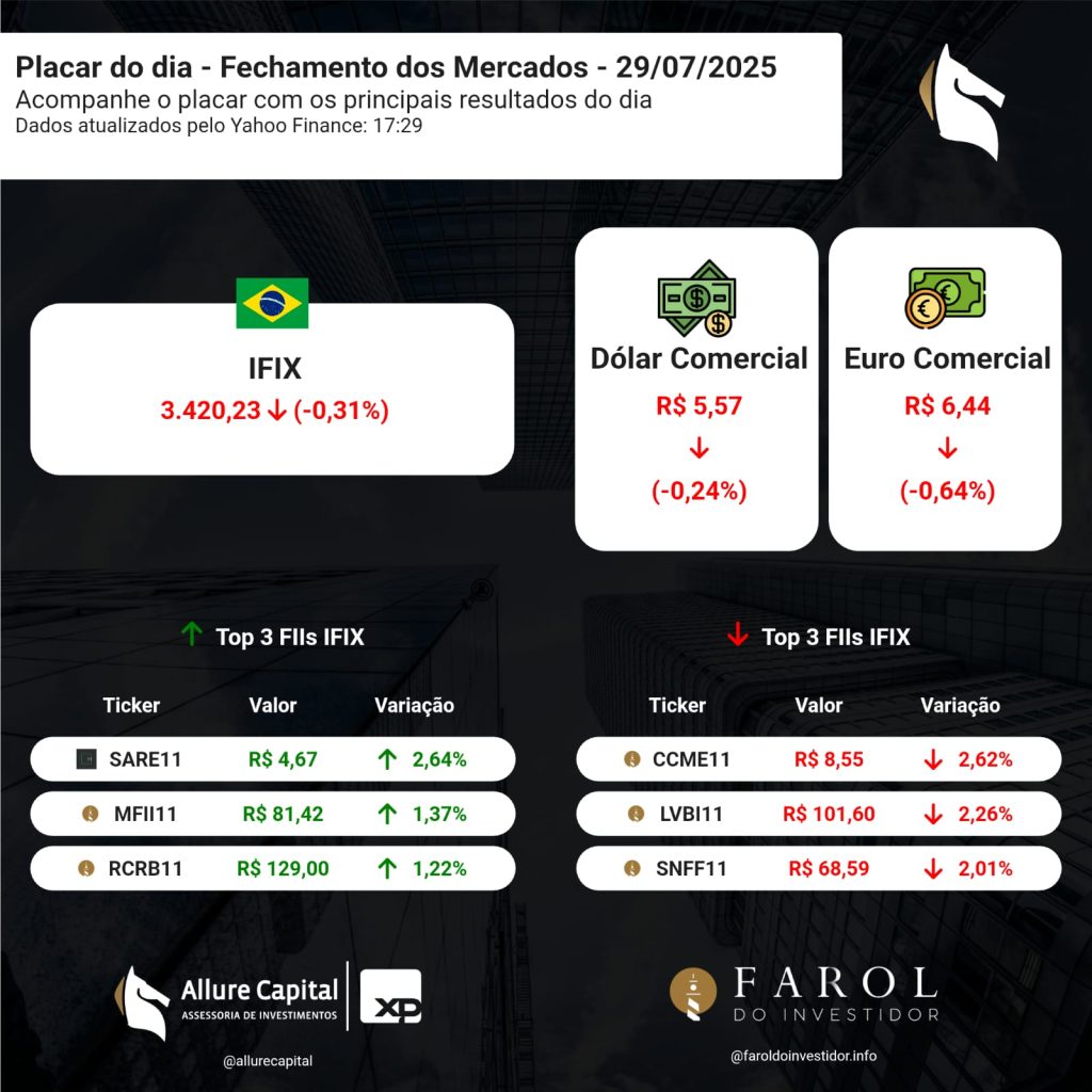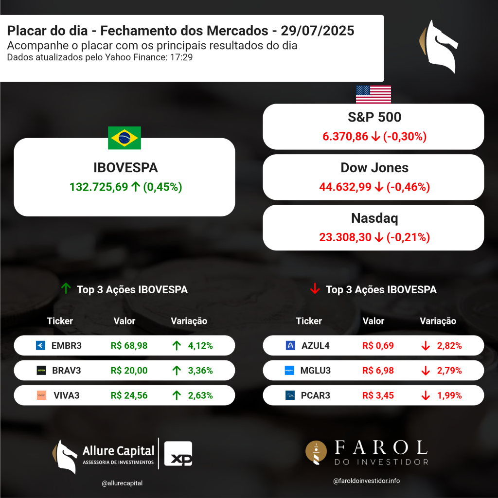 PLACAR DO DIA – Fechamento dos Mercados (29/07)