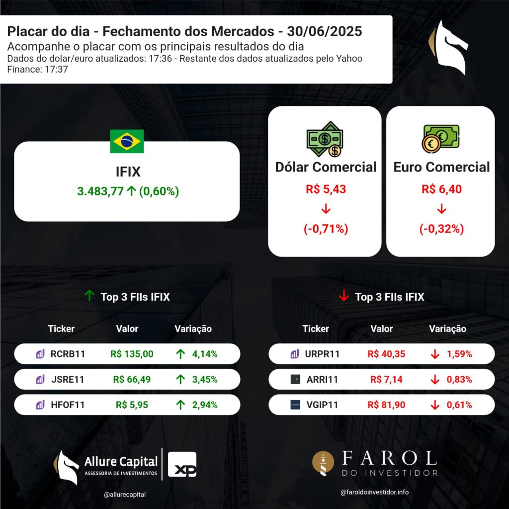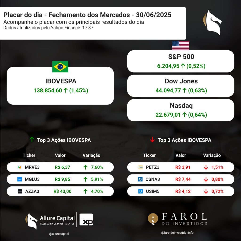 PLACAR DO DIA – Fechamento dos Mercados (30/06)